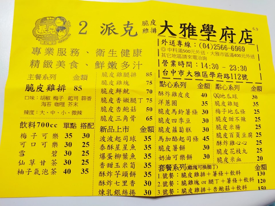 2024最新在地推薦餐廳的菜單_派克雞排大雅學府店的菜單、圖片