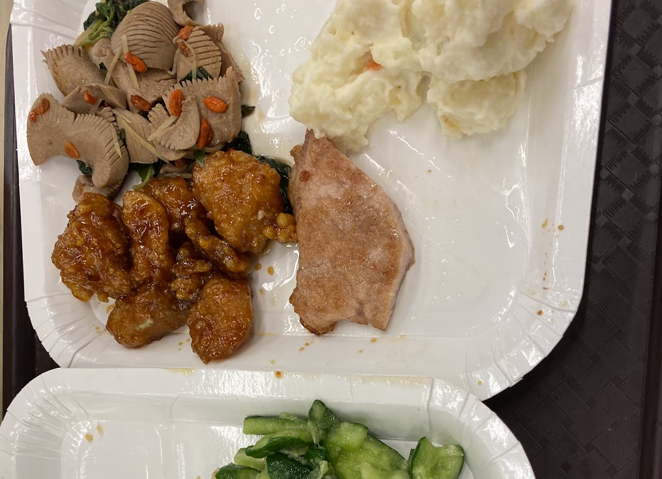 近幾次來用餐都已經沒有炒麵了 今晚用餐區環境比之前骯髒很多 清潔人員也沒像過往一樣巡視 桌上地上都有菜渣 蚊子蒼蠅多 趕蒼蠅結果還意外飛進我的湯裡 重新盛了一碗又換蚊子飛進去… 整整浪費了兩碗湯 跟之前的水準相較之下相差甚遠 不建議再來用餐