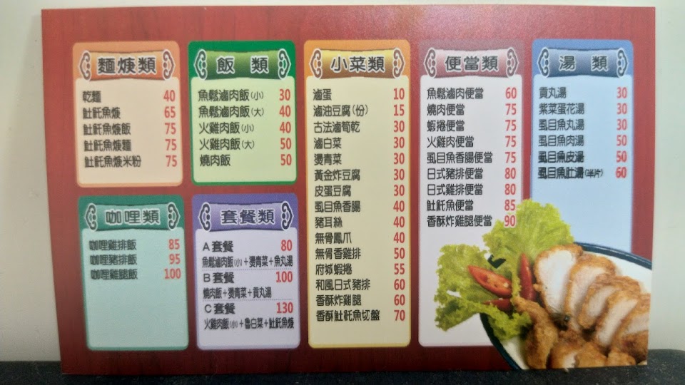 餐點價格合理划算,土魠魚羹真的鮮甜又香醇,常點的是滷雞腿便當與土魠魚羹麵,小菜也都很美味