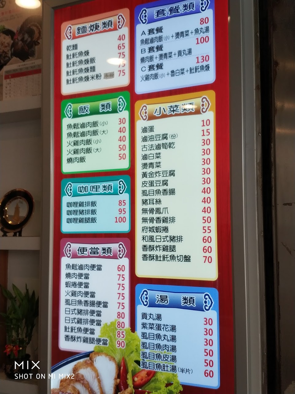 飯麵好吃儘量不要外帶,不然會影響食物口感,土魠魚是真的魚不能放外面太久,不然會氧化,滷雞腿便宜好吃要熱熱吃才好吃,服務太度好,我喜歡