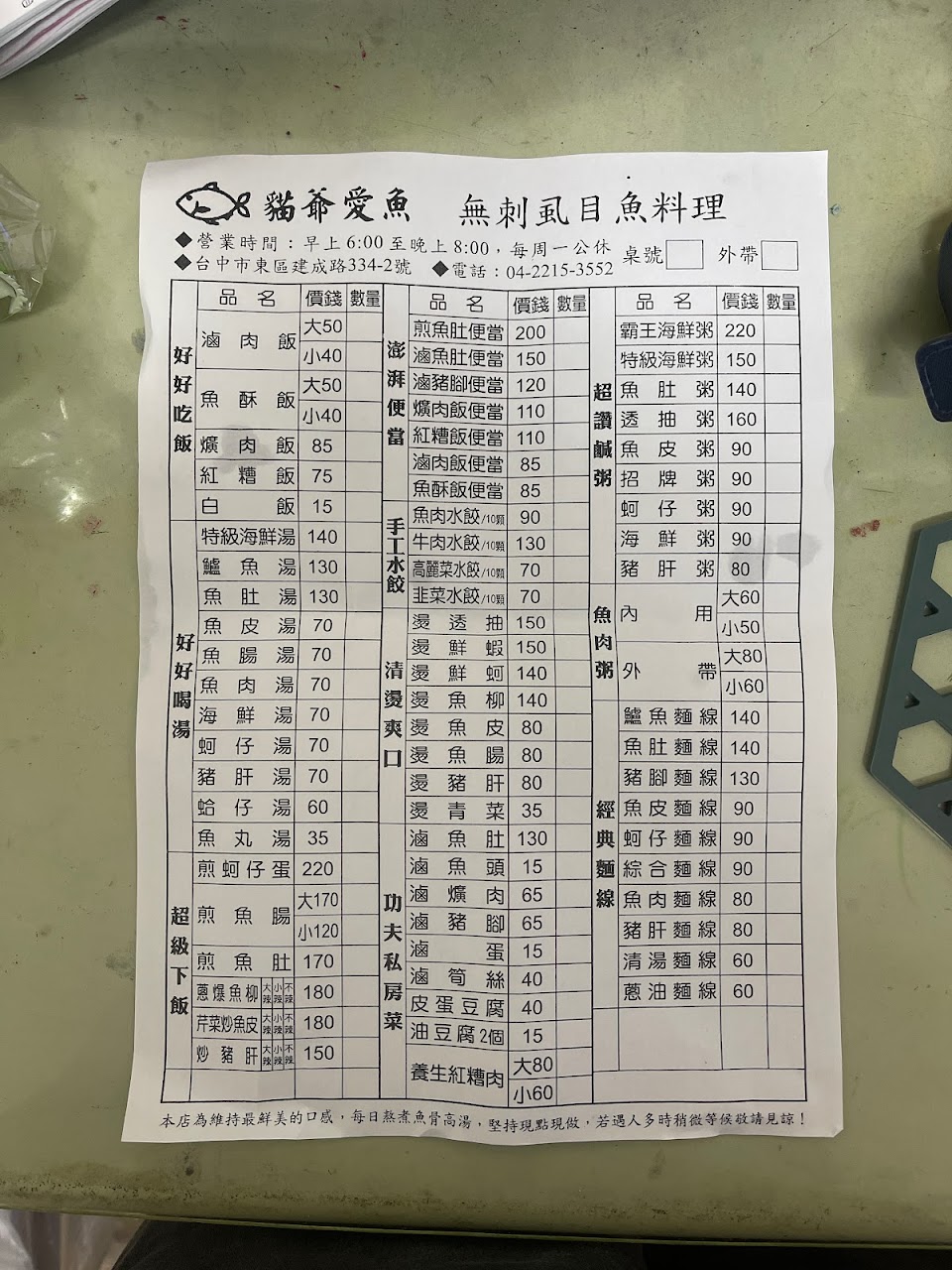 2024最新在地推薦餐廳的菜單_貓爺愛魚-虱目魚料理的菜單、圖片