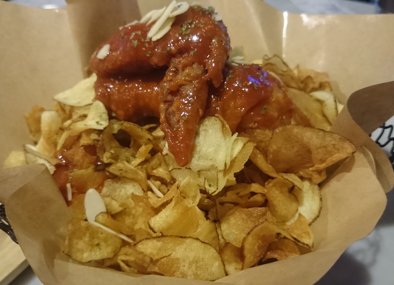 2-3人吃半隻雞很剛好,有數千片炸馬鈴薯餅乾+肉質很嫩的半隻雞在裏頭!?