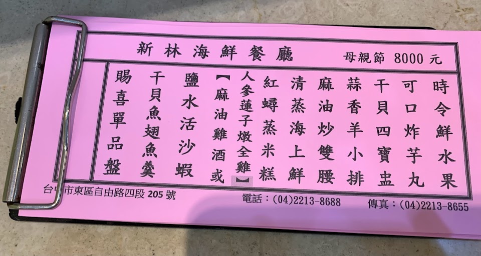 2024最新在地推薦餐廳的菜單_新林海鮮餐廳自由店的菜單、圖片