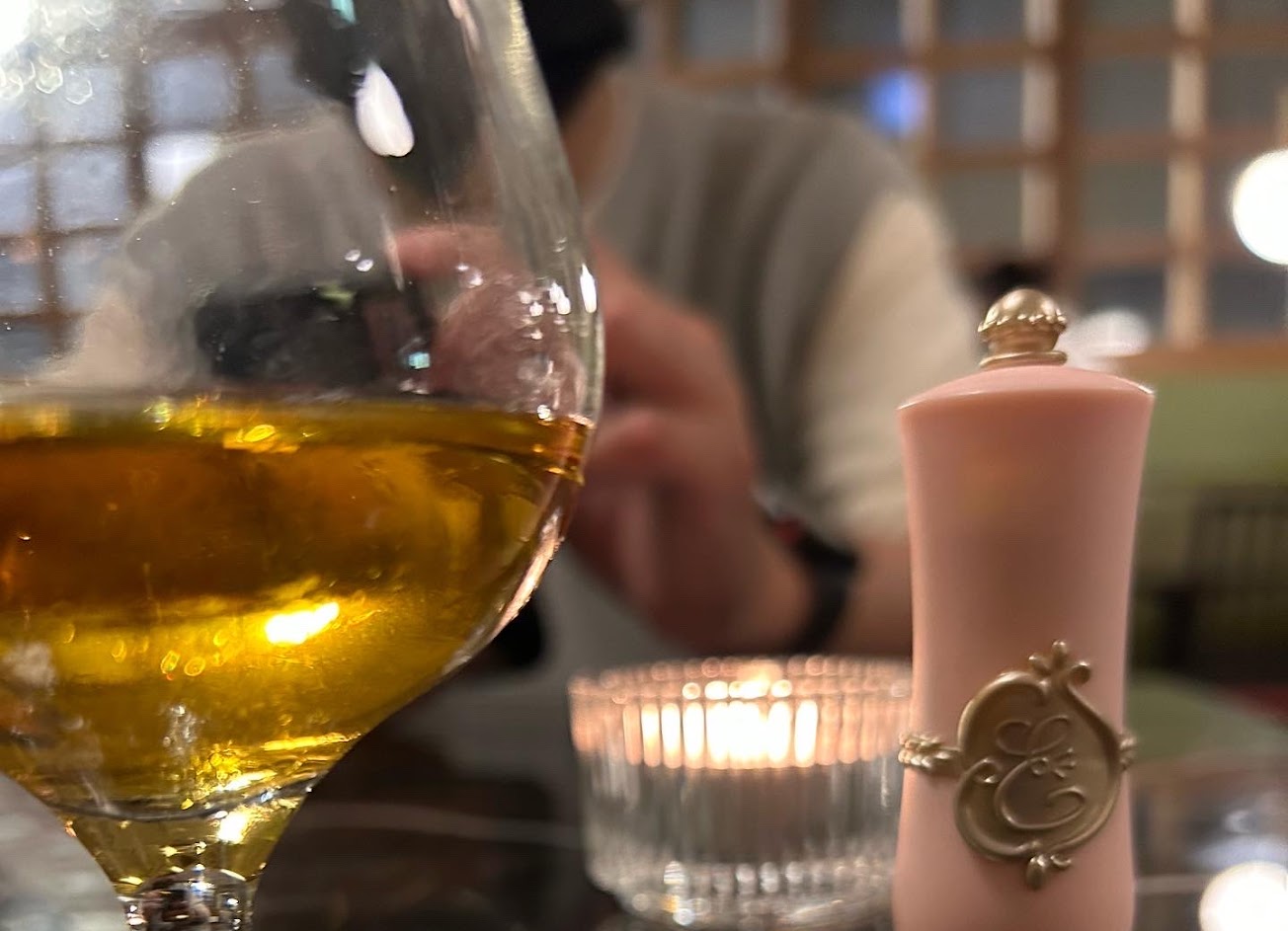 甜點前轉換心情的玫瑰露環節 水滴過大 噴在身上臉上不是很舒適