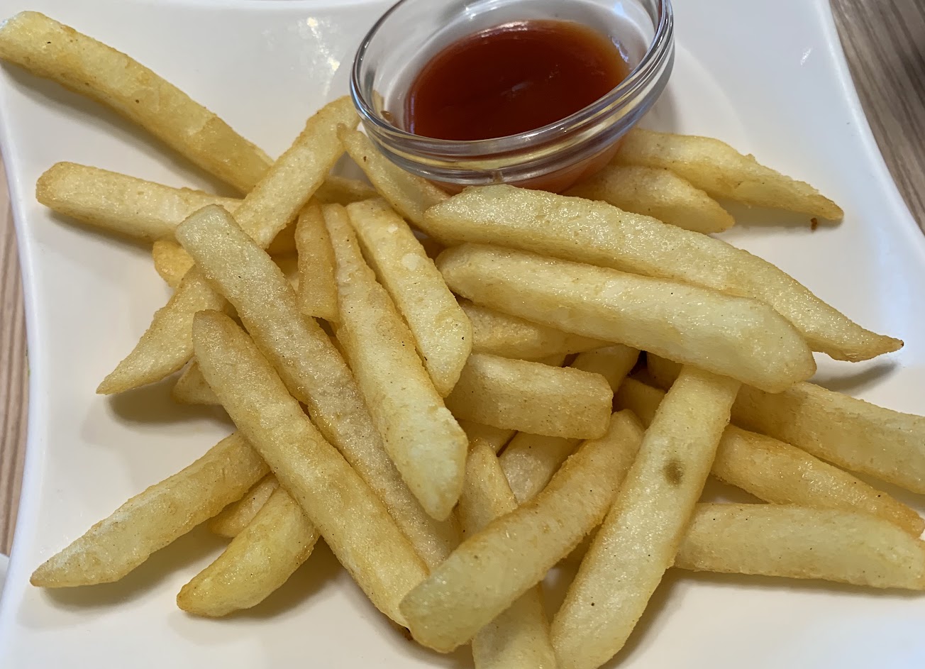 薯條。現點現炸,炸的超剛好,外酥內軟,要是能有蜂蜜芥末醬就太完美了?