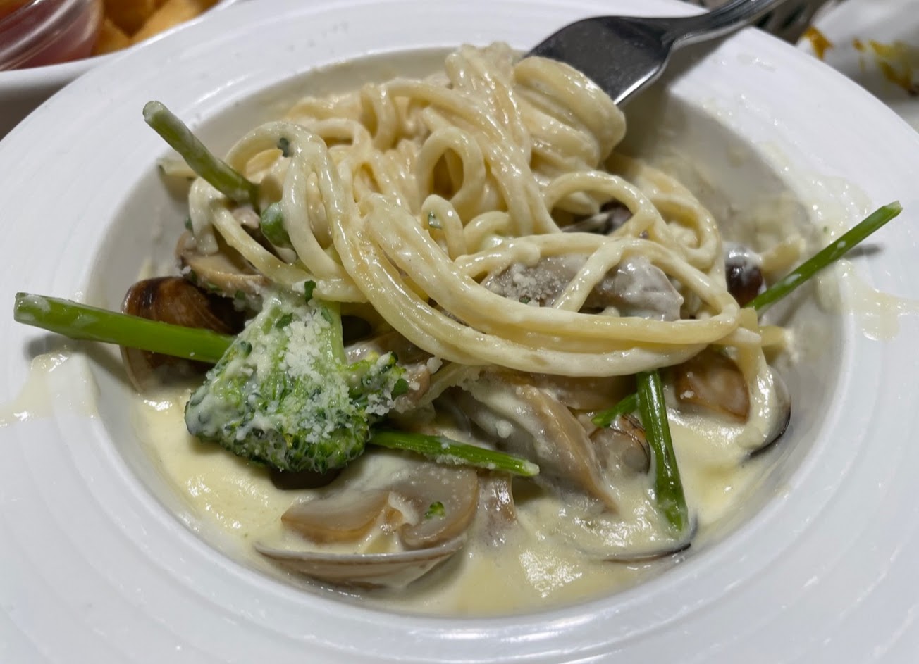 白酒蛤蠣麵,是奶油蕈菇麵。雖然很莫名,但已經是該店少數能吃且算好吃的食物。