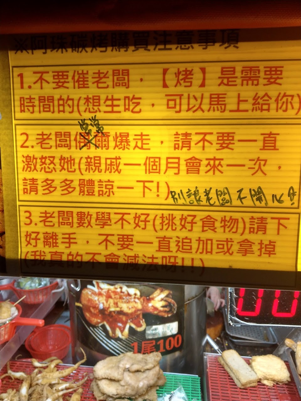 買個碳烤在那邊等的時候,聽老闆罵天罵地罵父母罵女兒,真的聽了很無奈。內用的人絕對是強者,情緒疲勞。