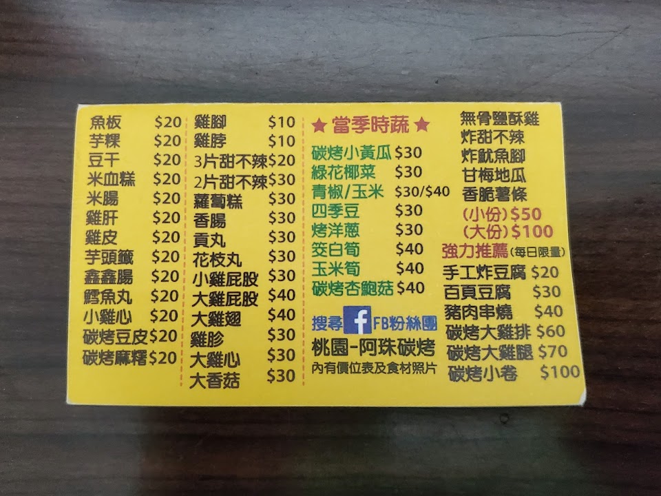 2024最新在地推薦餐廳的菜單_桃園阿珠碳烤的菜單、圖片