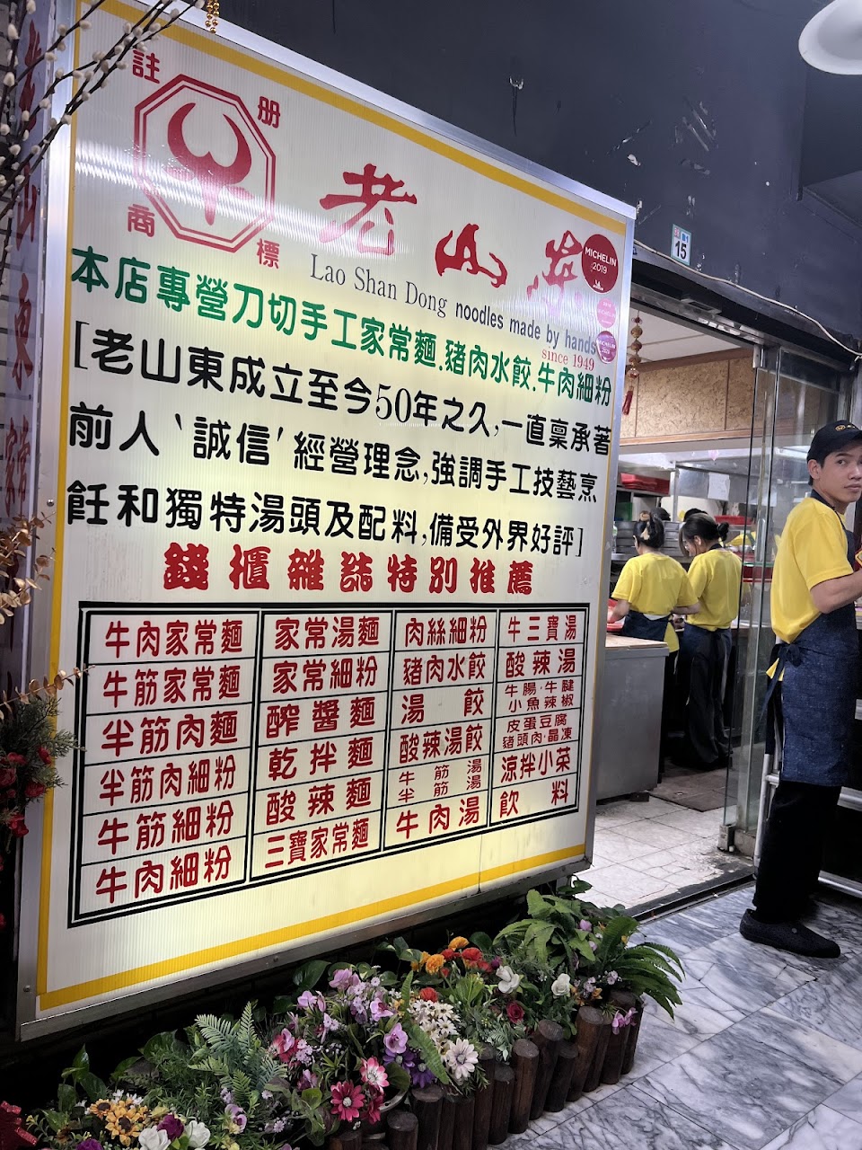 就牛肉的口感而言 真的是台北市最好吃的牛肉麵 牛肉帶筋軟嫩而不爛 牛肉湯滋味亦有厚度 加上酸菜辣牛油 還有口感十足的家常麪 果然是必比登名店 從民國六十年代 在國賓戲院後門巷內吃到現在 猶記得老板跑堂間的行話 大小加不辣 如今五十年後再回味 仍令人感動 服務 內用 餐點類型 晚餐 平均每人消費金額 $1-200 建議的餐點 紅燒 牛肉 麵