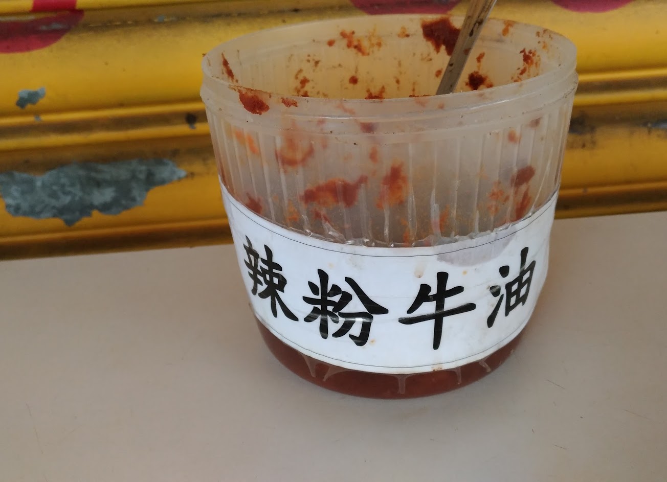 不起眼的小店,麵有粗細2種可選,麵條有嚼勁好口感,裡面有8塊牛肉鋪滿, 牛肉Q彈有點小柴。 加一大匙黃橙橙的牛油提辣提香氣,再來一小撮紅燒的絕配酸菜,更有層次。好吃!
