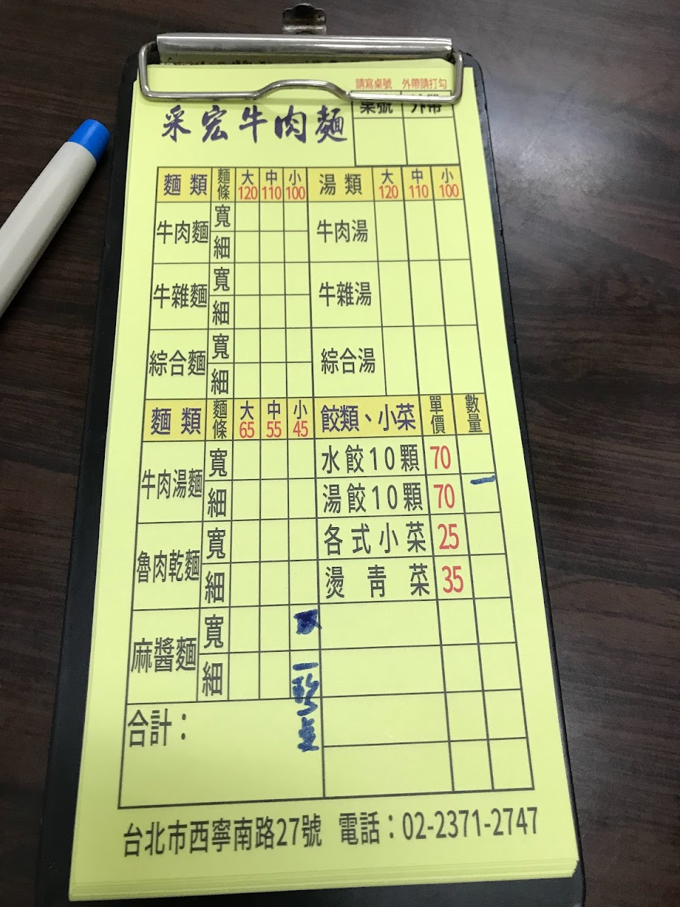 先找位置,店員會詢問要吃什麼,麵條有寬(刀削),細(拉麵),細粉(冬粉),送餐後結帳。