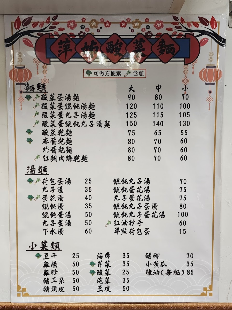 2024最新在地推薦餐廳的菜單_萍姊酸菜麵(原萬國酸菜麵)的菜單、圖片