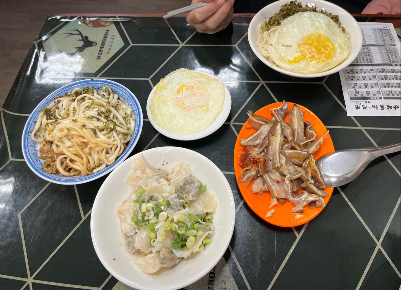 這家餐廳供應傳統的台灣美食。它看起來像一個家族企業。這個地方在東邊就能找到。他們沒有英文菜單。不過,他們有圖片供您選擇食物。我去這裡吃早餐。我們點了兩碗麵條。乾拌面配炒泡菜和肉末,湯麵,配上炒泡菜和煎蛋捲。麵條看起來是自製/手工製作的。它很軟而且很容易吃。湯實在是太美味了。如果你想讓麵條更有味道,也可以加點醬汁。他們有sriracha、蒜蓉醬和不知名的醬料。我們沒有機會嘗試他們的餛飩。我們讀到這是他們的招牌食物。如果你去台北旅遊並且想嘗試傳統食物,我建議你順便去這個地方。這家餐廳的座位有限。我支付了現金,我不確定他們是否接受銀行卡或數字支付。 ?????