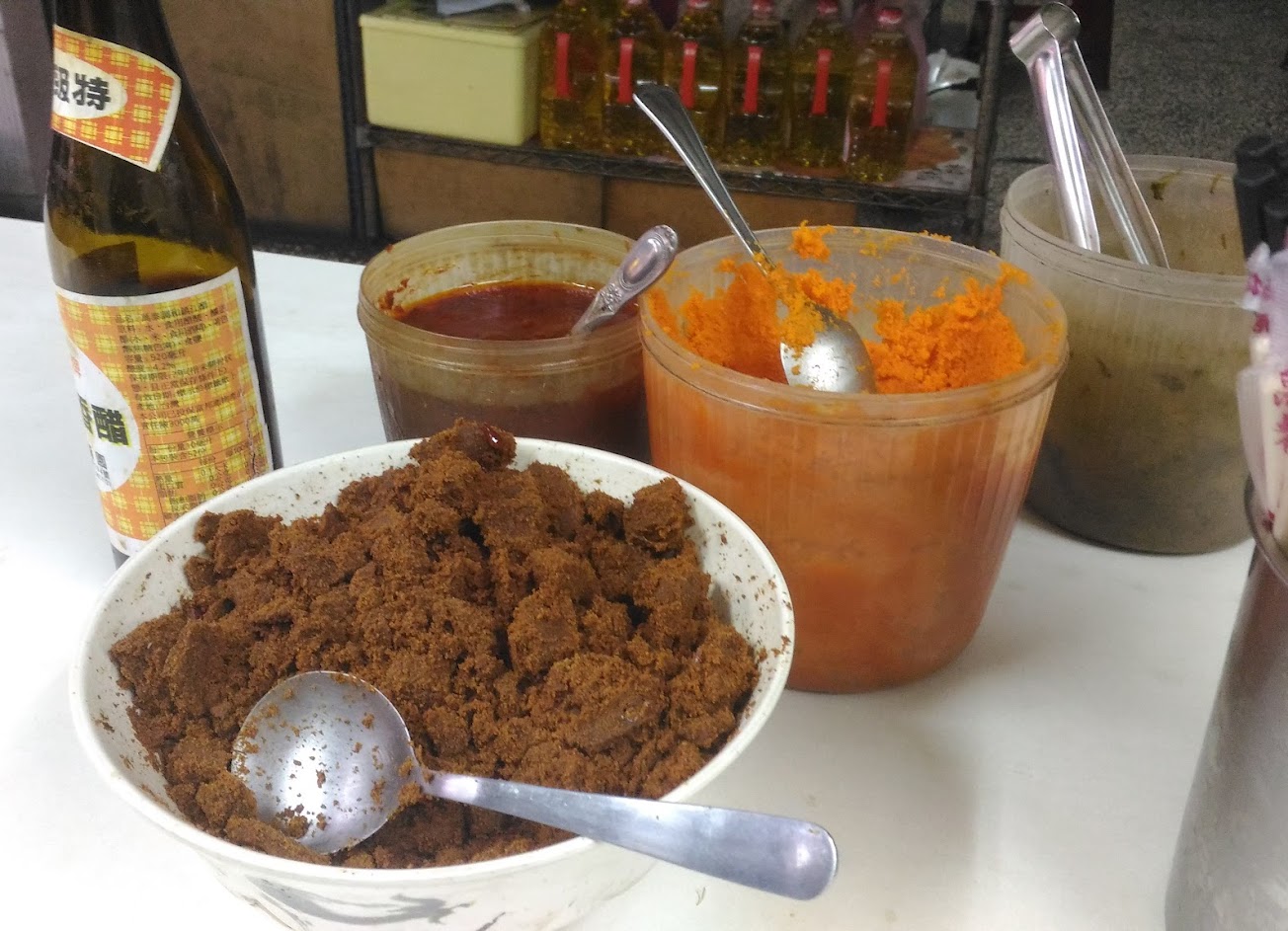 桌上的醬料和酸菜都可以自己加 但都沒有蓋著不知道就這樣放了多久 衛生堪慮