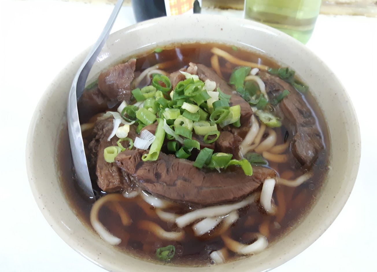 紅燒的湯頭、爽口的滋味及不吝嗇的牛肉塊,在上面撒了些青蔥,增添了色香味的感官。 …