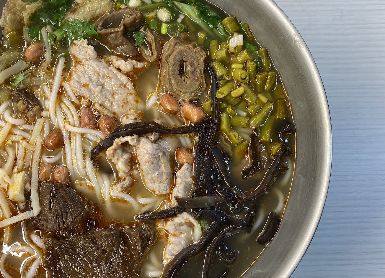 湯頭層次分明濃郁酸香,酸豆角、乾豆皮一應俱全,認真的一碗粉,滷肥腸很入味建議可單點