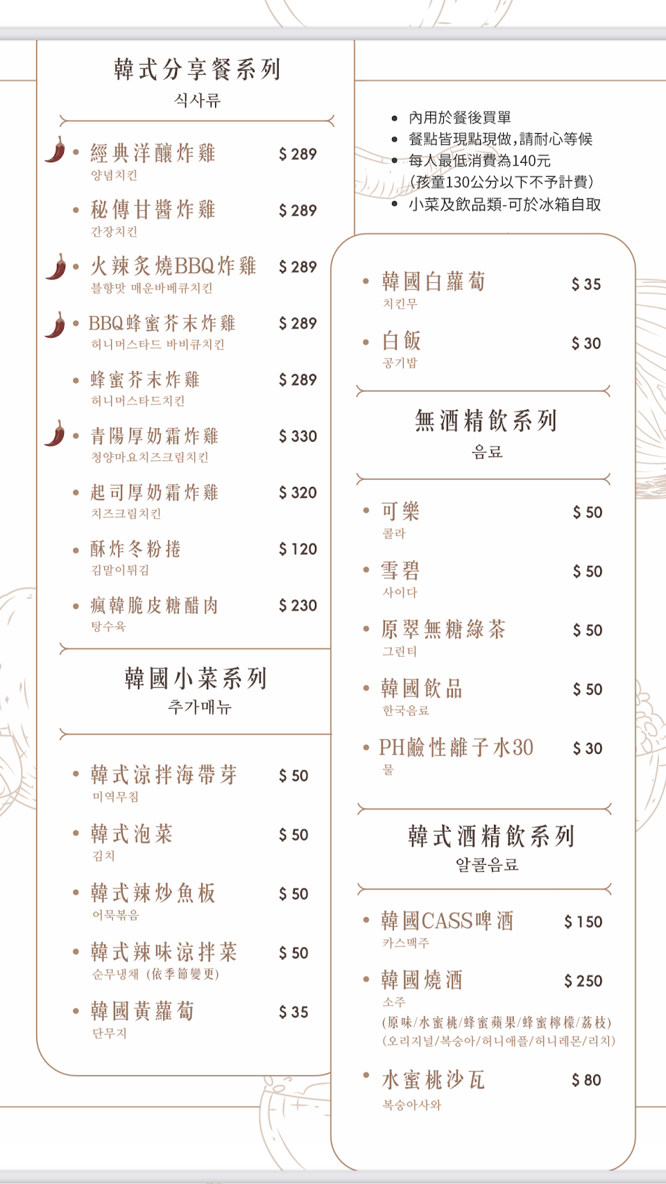 推薦韓瘋烤肉蛋包飯、瘋炸醬麵、瘋流芝士辣炒年糕、瘋韓脆皮糖醋肉~
