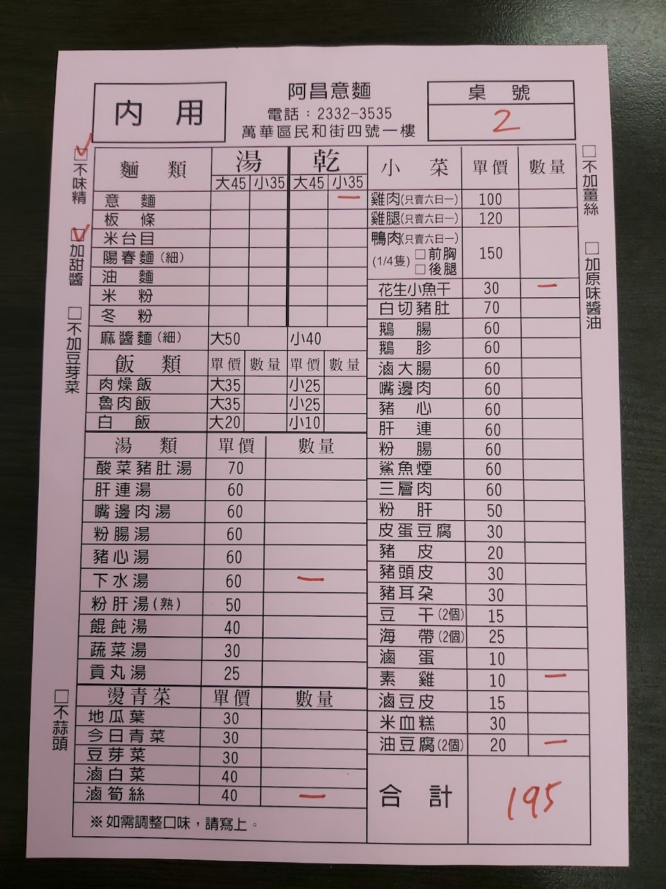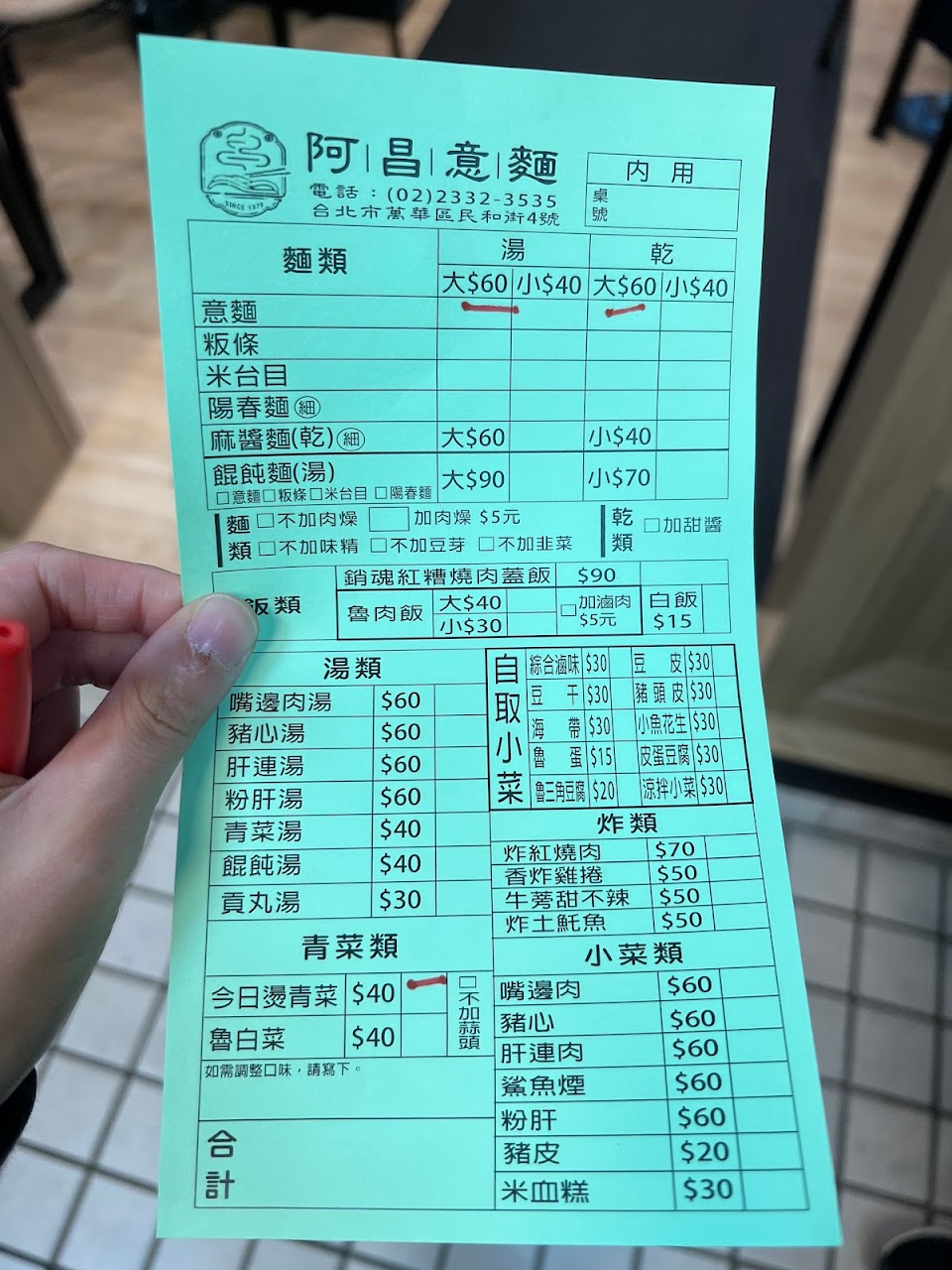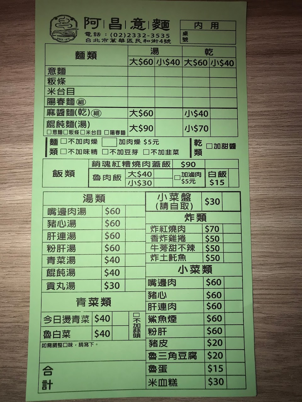 2024最新在地推薦餐廳的菜單_阿昌意麵的菜單、圖片