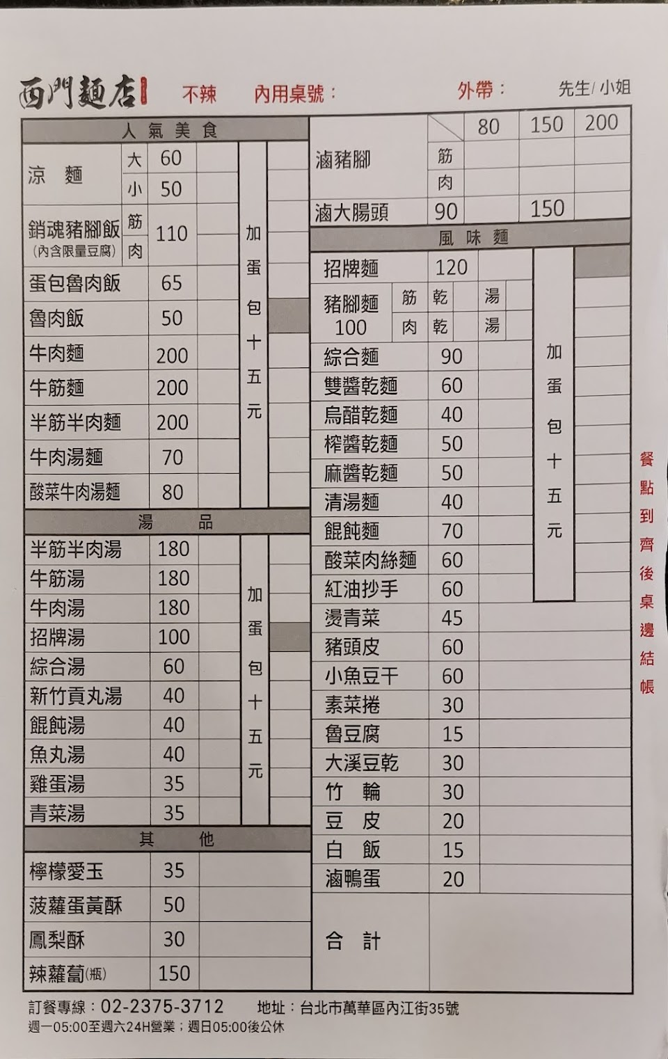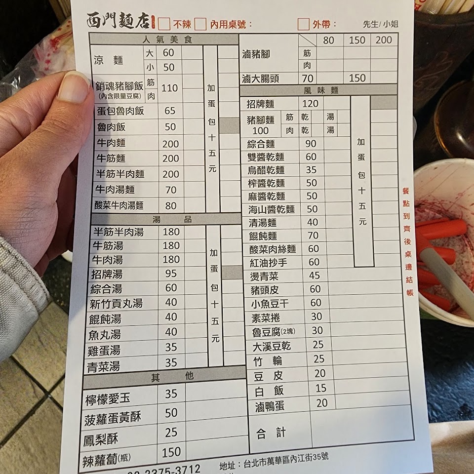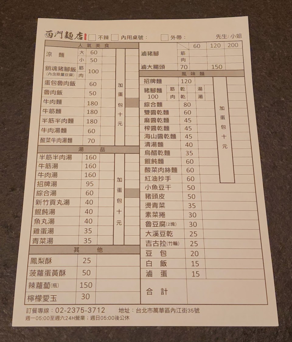 2024最新在地推薦餐廳的菜單_西門麵店的菜單、圖片