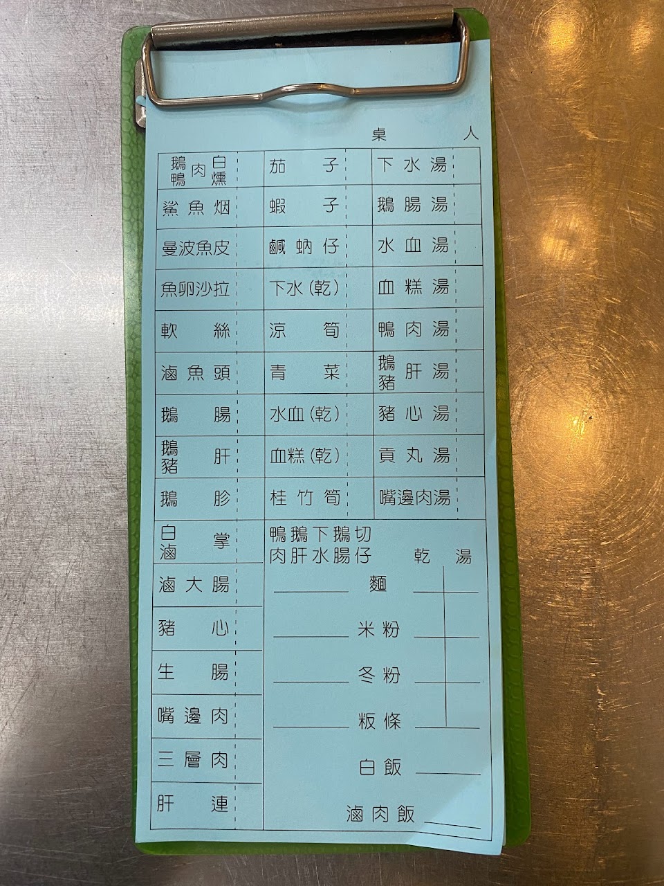 入口處有一張點餐單,基本流程是拿到座位上,選擇想吃的,填寫數量,交給店員點餐。