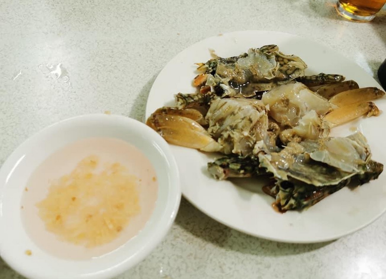 嗆蟹,講實話是我今天的重點,這間的做法比較像是門閩式生醃螃蟹蟹肉,因為蟹肉呈現半透明,上桌時是冷凍退冰的做法,蟹肉味道香甜可口,可以用吸的,而沾醬也是醋與姜蒜沫非常的簡單,把蟹肉完全浸泡在醬汁中再慢慢吸吮,真的越吃越爽口,不過建議要快點享用才能享受到真正的美味,不過真的好可惜,我們的這支沒有膏啊,哈,這樣代表還要再來試一次囉。