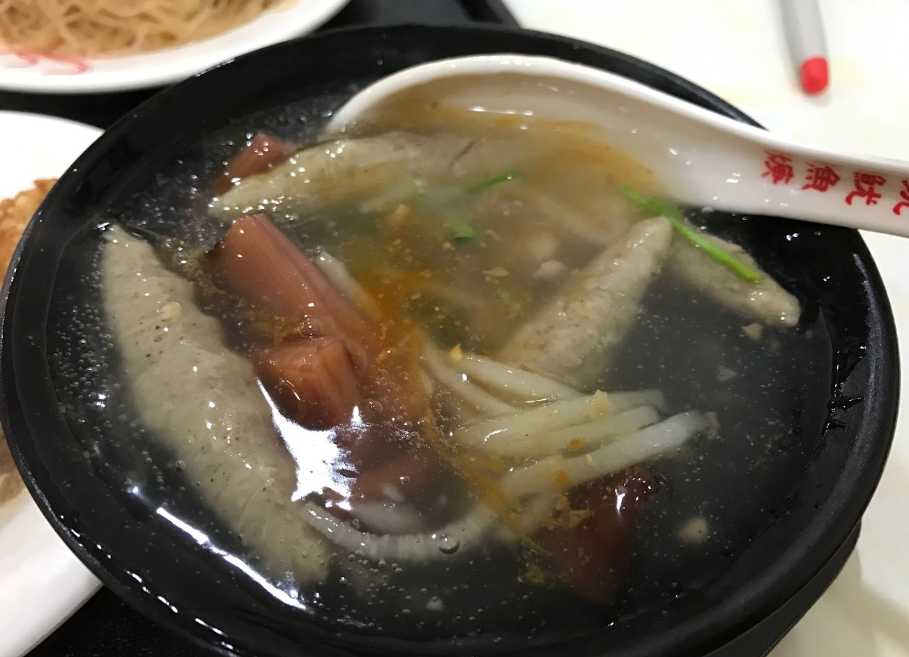魷魚羹的味道還不錯。肉羹裡放了很多胡椒。