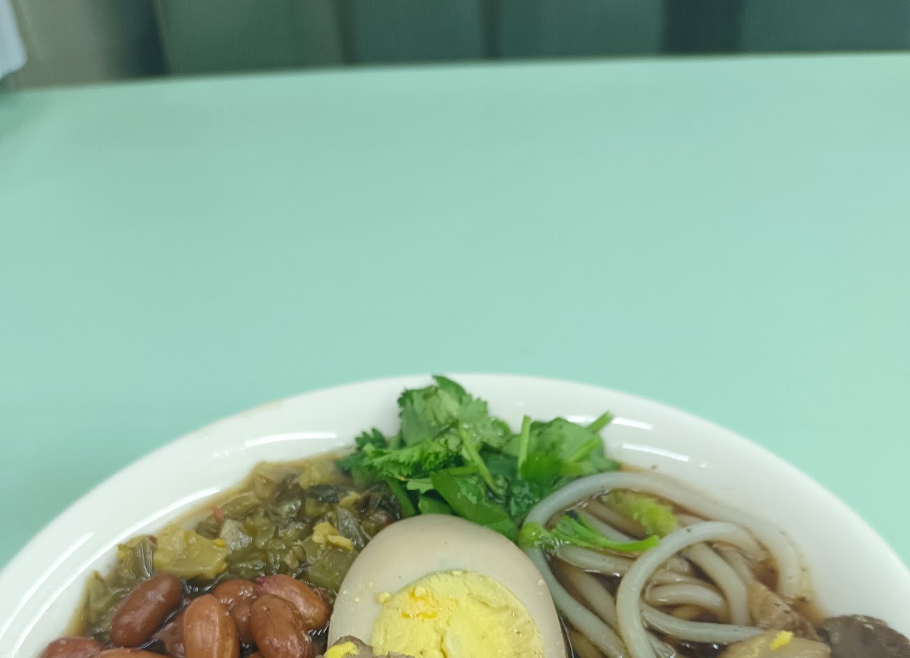 滿不錯的(跟附近名店螺螄粉比⋯),裡面還有真的螺肉。但是算很清淡,加上老闆手切的辣椒比較剛好。綠豆湯是老闆招待,帶著黑糖味很解膩。