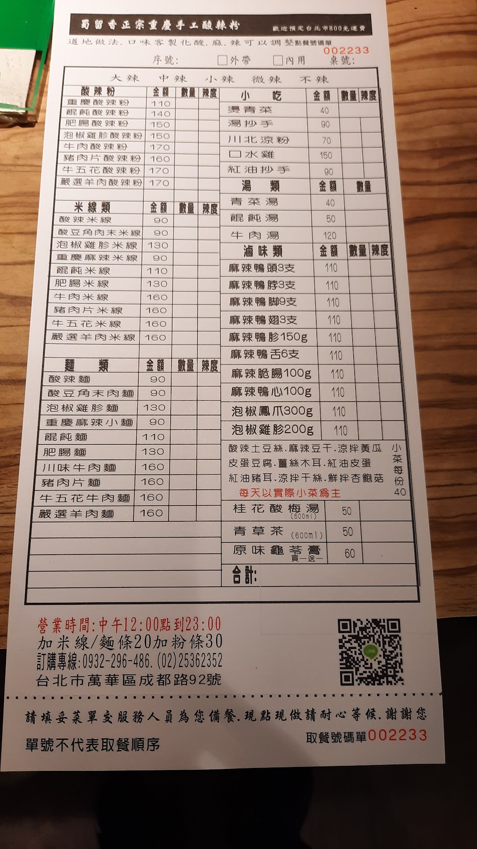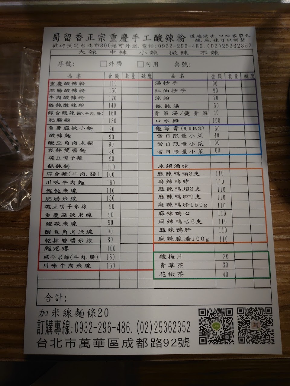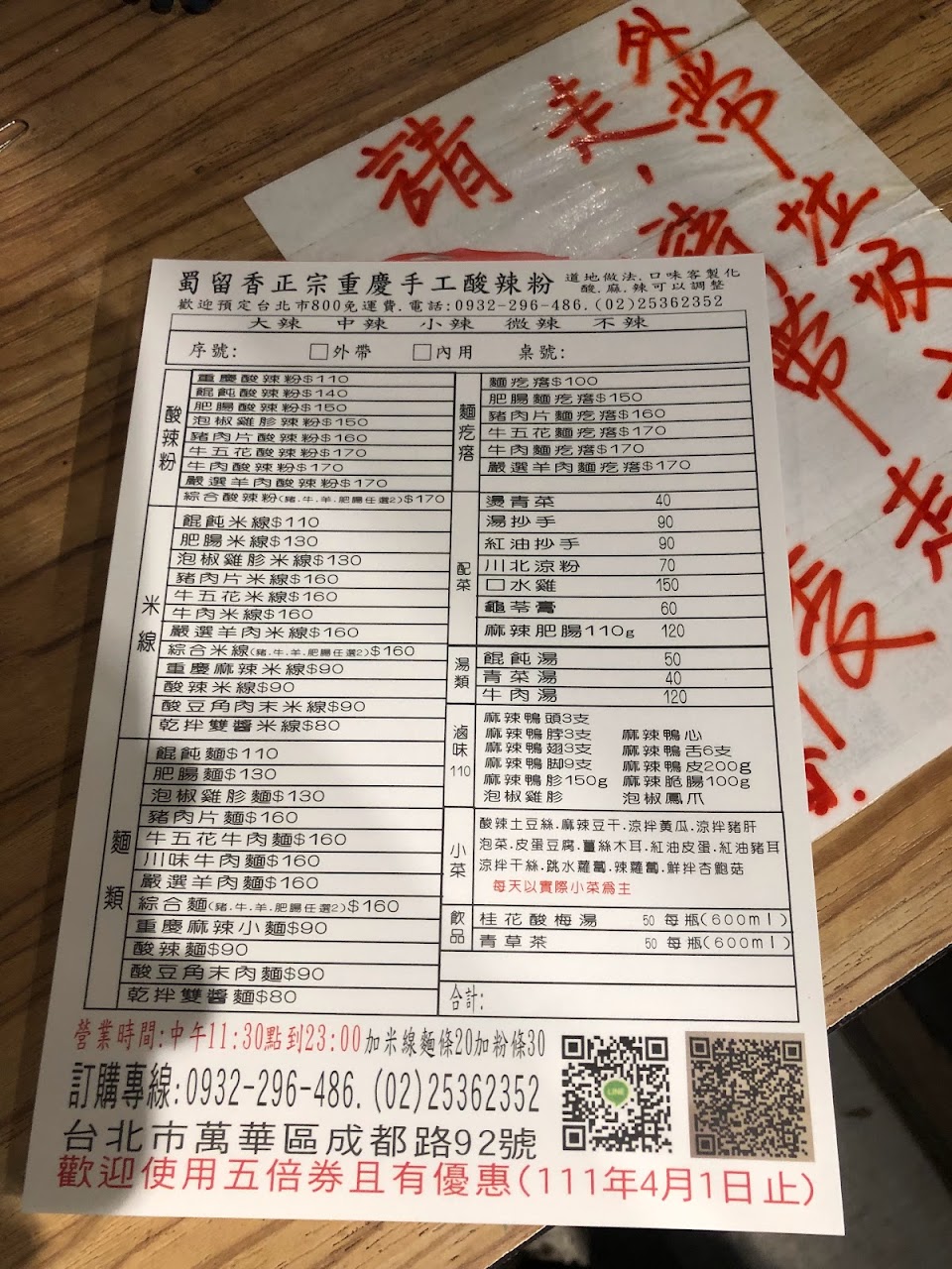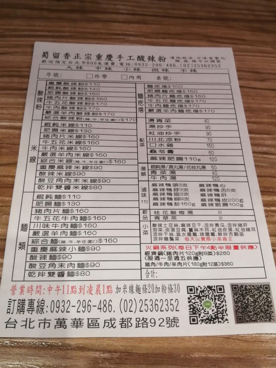 2024最新在地推薦餐廳的菜單_蜀留香正宗重慶酸辣粉(萬華店)的菜單、圖片