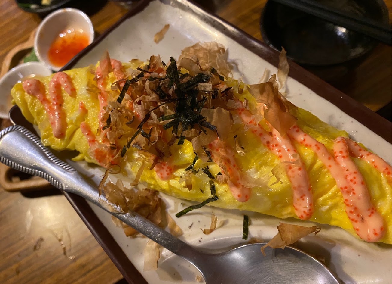 氣氛很好,東西不錯吃,打卡送梅酒 明太子薯條是帶皮的半月薯條,明太子醬可以再加,店員蠻親切,上餐快速