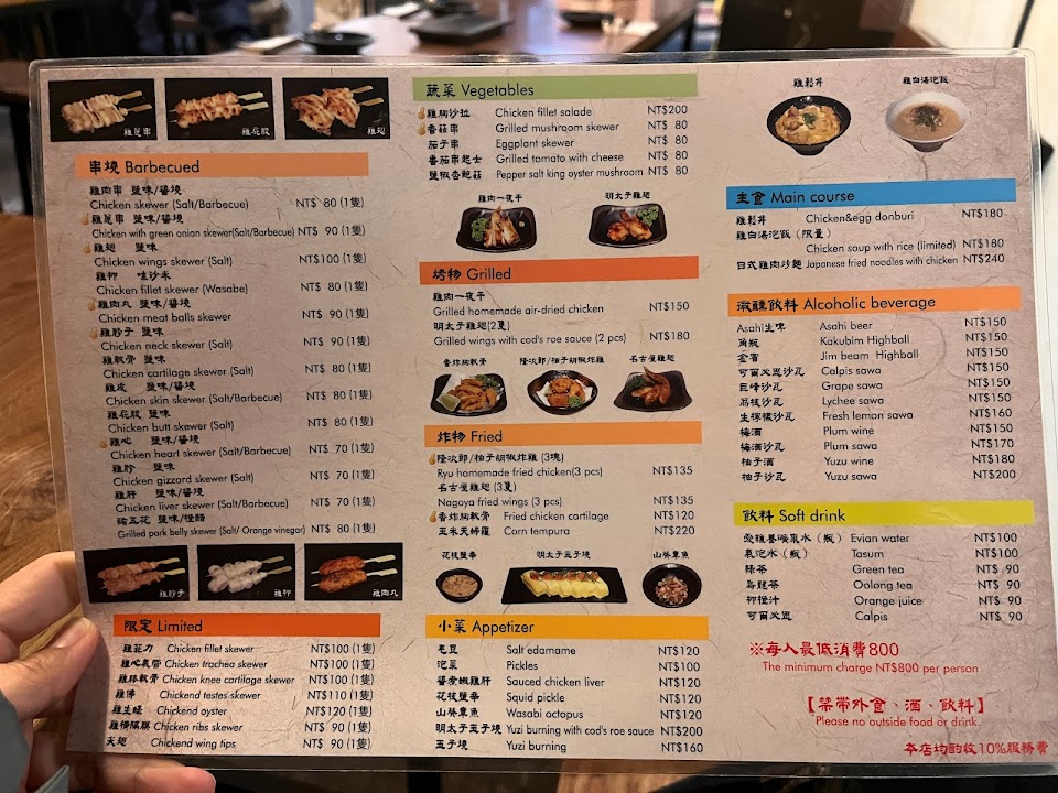 與菜單價格相比,我被額外收取了 100 新台幣的清酒費用,而且我的雞肉丸子串沒有蛋黃(我認為這是由於雞蛋短缺,直到我看到其他人的肉丸串收到蛋黃)。