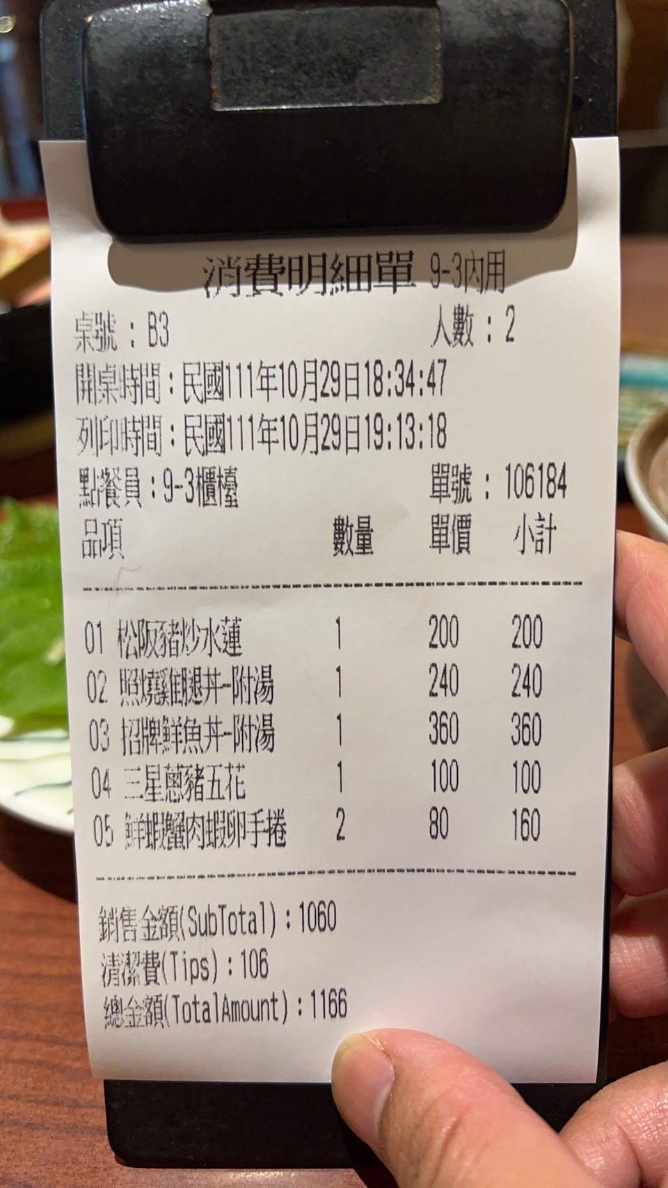 餐點:1