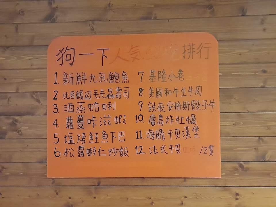 2024最新在地推薦餐廳的菜單_狗一下居食酒屋-西門店的菜單、圖片