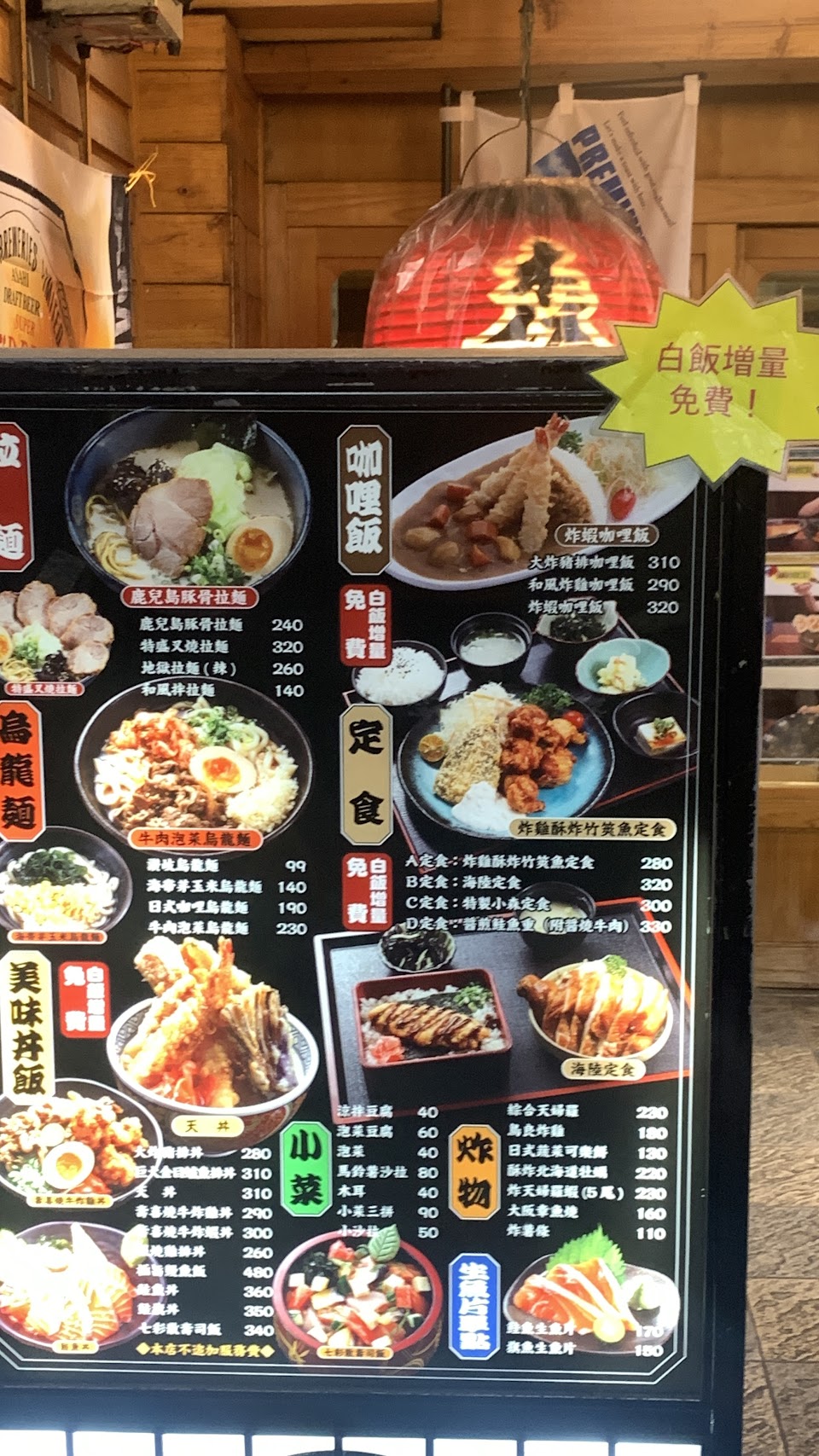 炸雞咖哩飯味道普通只有三塊炸雞,丼飯冷冷的,味增湯淡如水,這個價位還要併桌,總之非常失望!