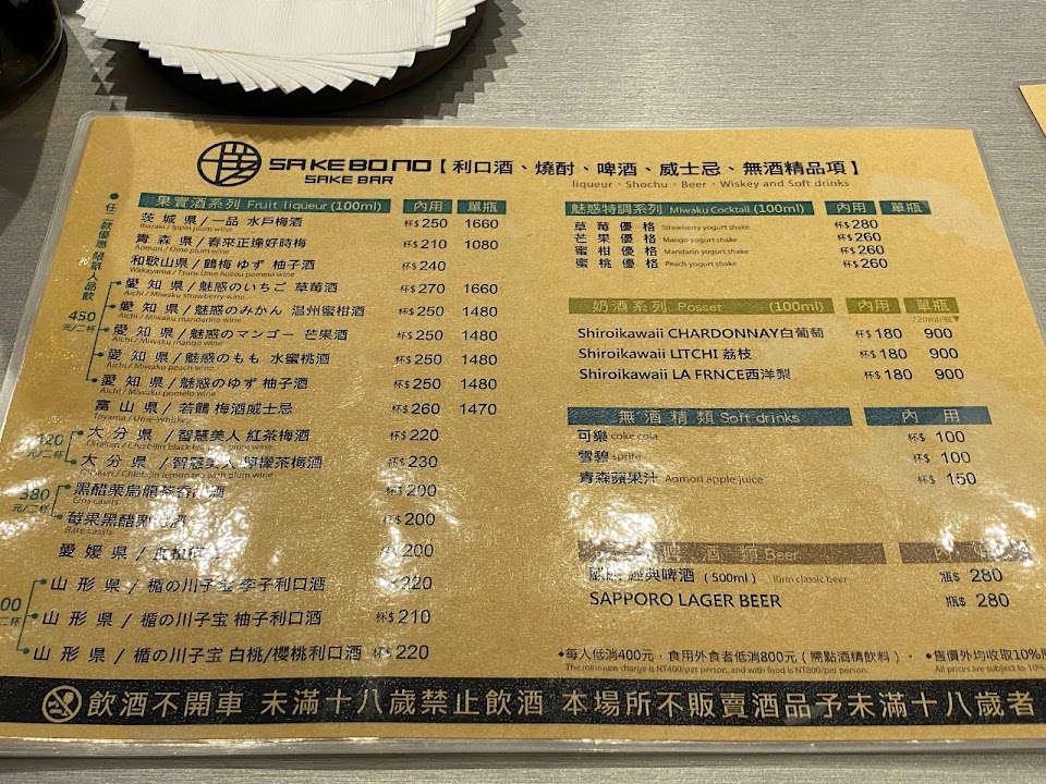 2024最新在地推薦餐廳的菜單_SAKEBONO SAKE BAR 曙 日本清酒吧的菜單、圖片