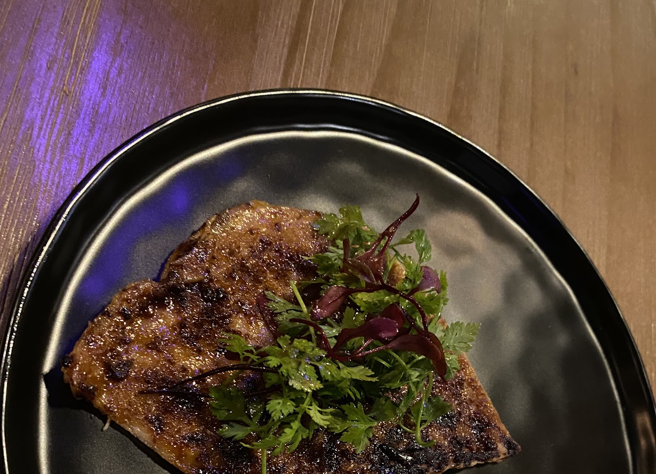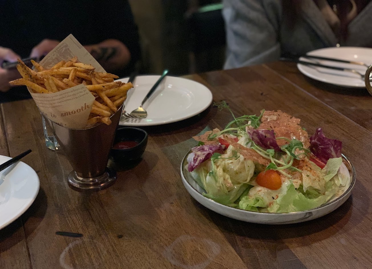宵夜所提供的餐點選擇性不多,若有人不喝酒的話,要湊滿低消也實不容易。以當晚所點到的餐點和調酒來說,擺盤富創意賣相不錯,但美味度還有進步的空間,尤其是最後上的烤牛小排筋膜強韌到很難咬斷。