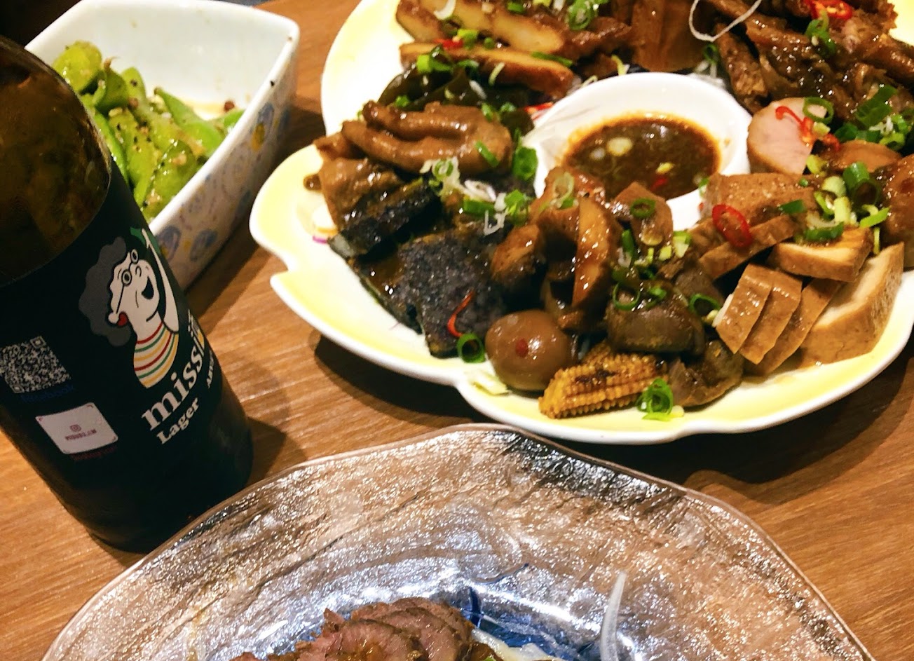冰淇淋滷蒜球有夠讚,綿密的口感沒有大蒜嗆鼻的味道還有帶點果香。創意料理杏鮑菇剛端上桌前還有炙燒,三款風味完全不同。滷鴨腸shot一口吃入非常的多汁且平衡,配上孜然粉完全不膩口。拼盤每一樣都很好吃,很入味很用心,滿足了我每一樣都想吃吃看的貪婪,而且食用相當方便,都切成一口大小不用很醜的啃鴨翅或鳳爪。毛豆帶點花椒的氣息也很舒服。好吃到害我忘記剛剛吃過晚飯 (;´༎ຶД༎ຶ`) 啤酒搭配滷味也非常的暢快!
