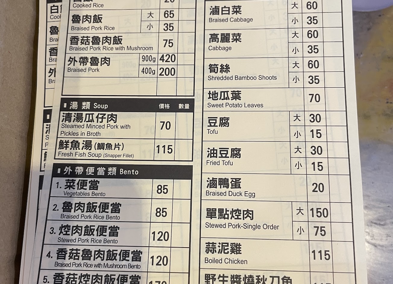 滷肉飯裡的白飯與滷肉不合比例,經常滷肉吃完了還剩一堆白飯,以前還能付費加滷肉現在也不行了。漲價以後服務反而退步…….