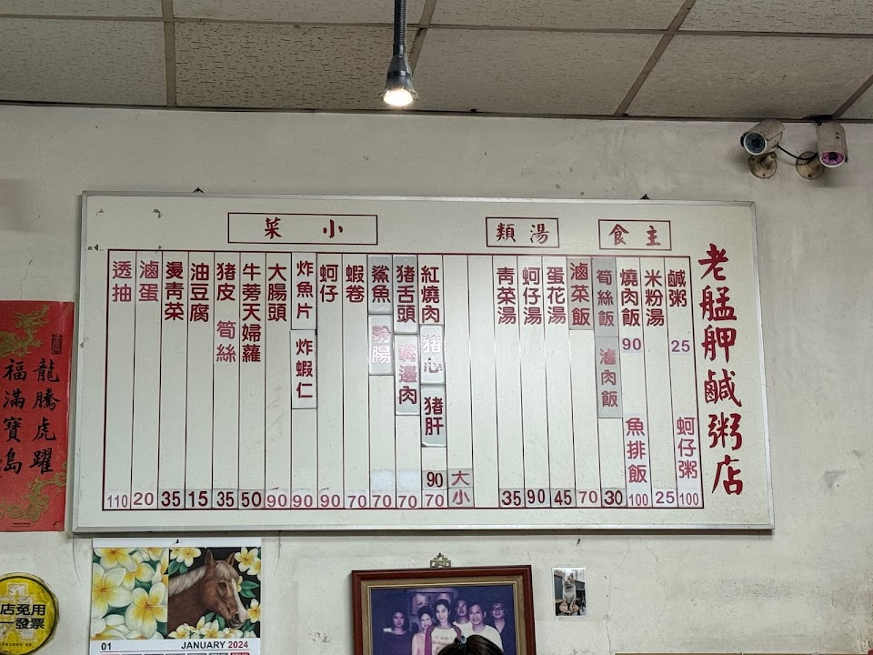 也許桌面、店內不是那麼乾淨整潔,但是食物絕對是最傳統的萬華鹹粥。炸蚵或清燙蚵都好吃。紅燒肉可以選全瘦肉或是五花的,這點大大推薦,要吃肥吃瘦自己選。加上招牌鹹粥,一家子吃下來還不到五百元。非常推薦的老店。
