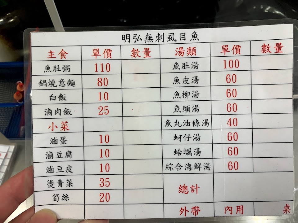 2024最新在地推薦餐廳的菜單_明弘無刺虱目魚專賣店的菜單、圖片