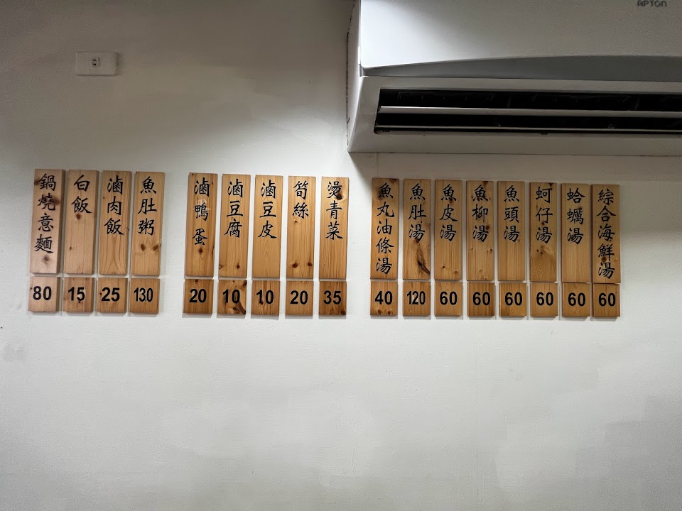一、鍋燒意麵、綜合海鮮粥、虱目魚肚粥、魚皮魚柳粥、鍋燒湯飯、滷肉飯、燙青菜、筍絲、滷蛋、滷豆皮都不錯,以價格、品質與份量而言,CP值高。