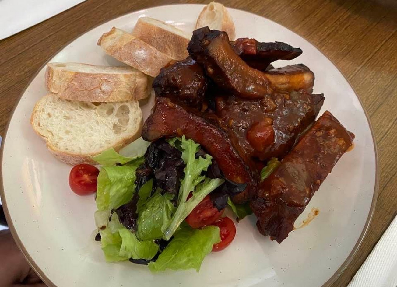 很棒的午餐饗宴,原本只是想來買熱紅酒的材料,卻沒有想到吃到一份好吃好感受的美食,肋排+義大利麵很特別,肋排骨肉分離義大利麵調味很好,鴨胸配上墨魚飯也很棒唷,引動下次還要再來的想法,期待下次再來的美食享受