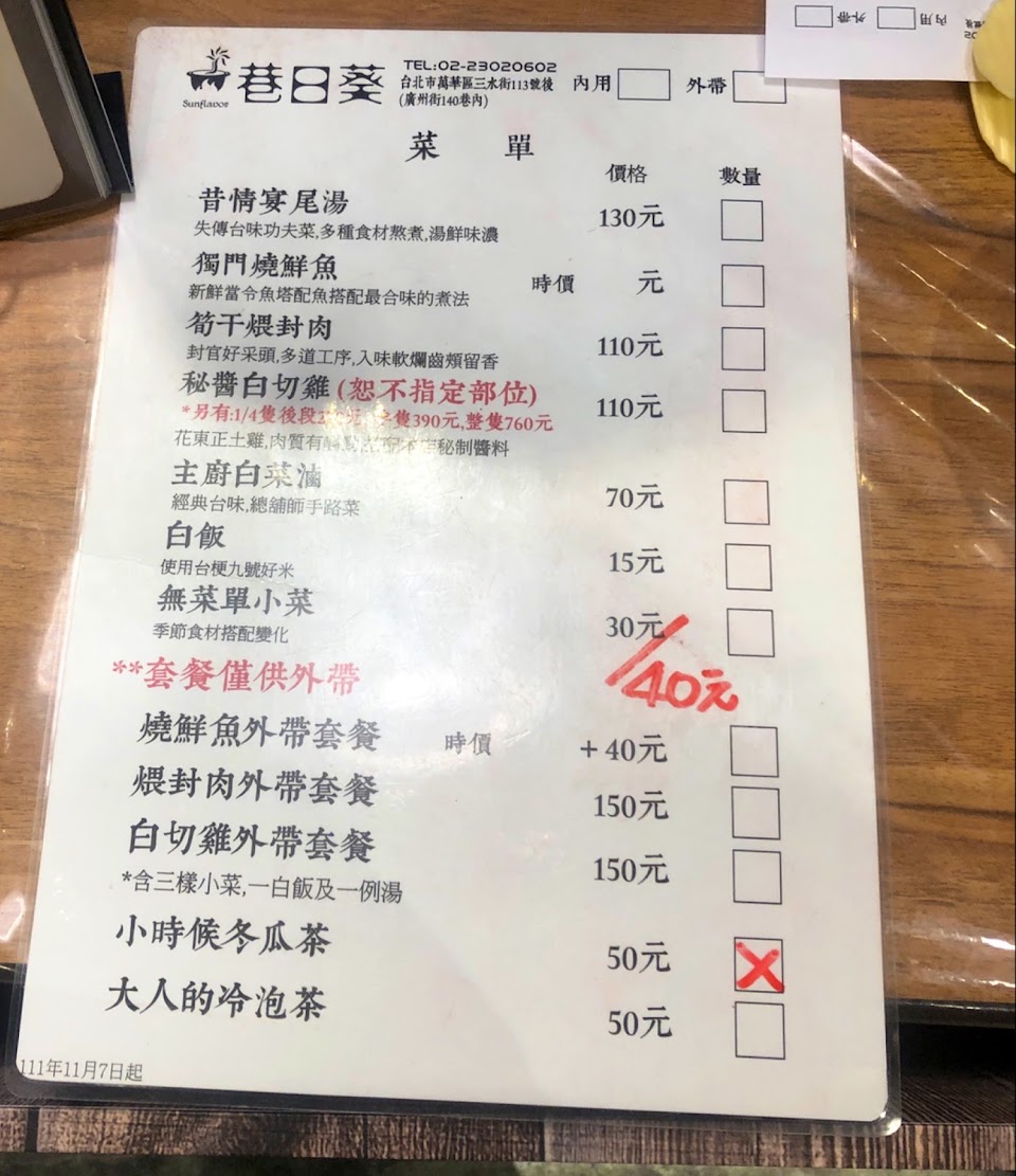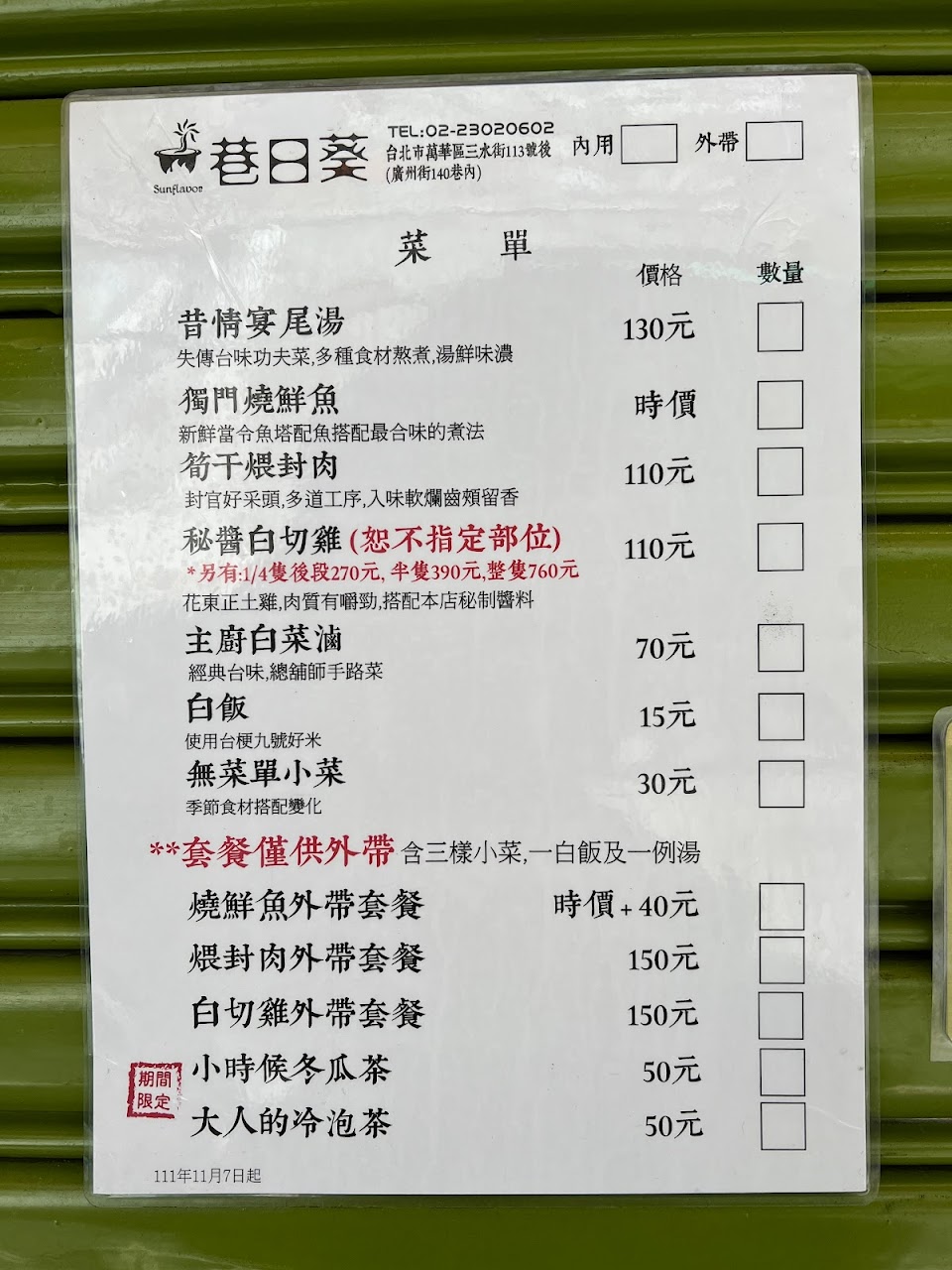 2024最新在地推薦餐廳的菜單_巷日葵 Sunflavor 功夫小台菜 ∣暫停營業中的菜單、圖片