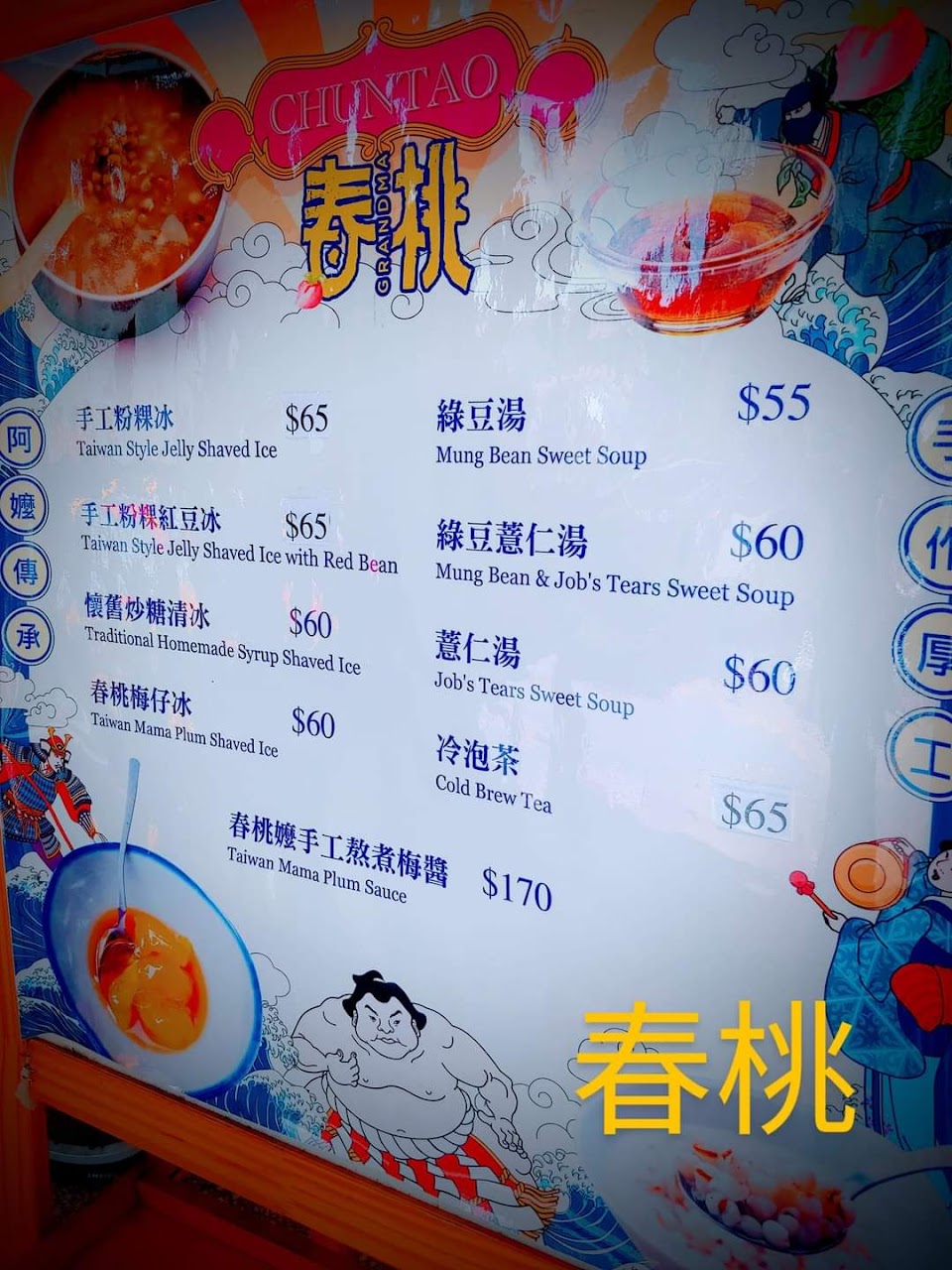 隱身在永福街老松公園旁的「春桃」,開業於2019年,春桃是老闆阿嬤的名字,夏天主打冰品,秋冬販賣麻糬,一年都有甜湯供應,全部都是老闆遵循阿嬤方式,手工製作,費時費工,對食材跟作法都很講究,只為了重現小時候吃到的味道。