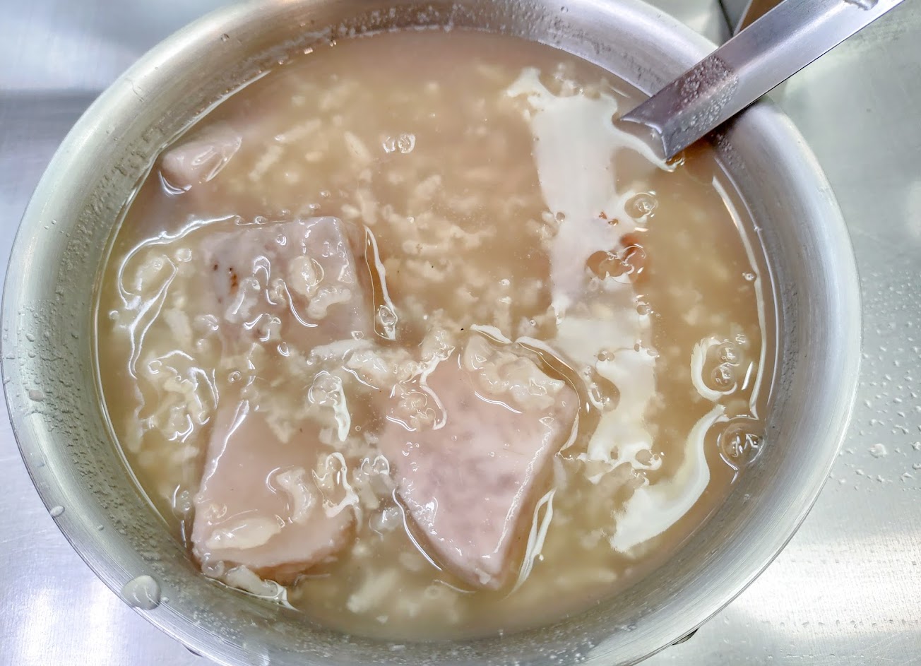 芋頭煮的本身軟爛,芋頭塊裡面保有稍微硬的口感,湯本身我覺得甜而不膩。