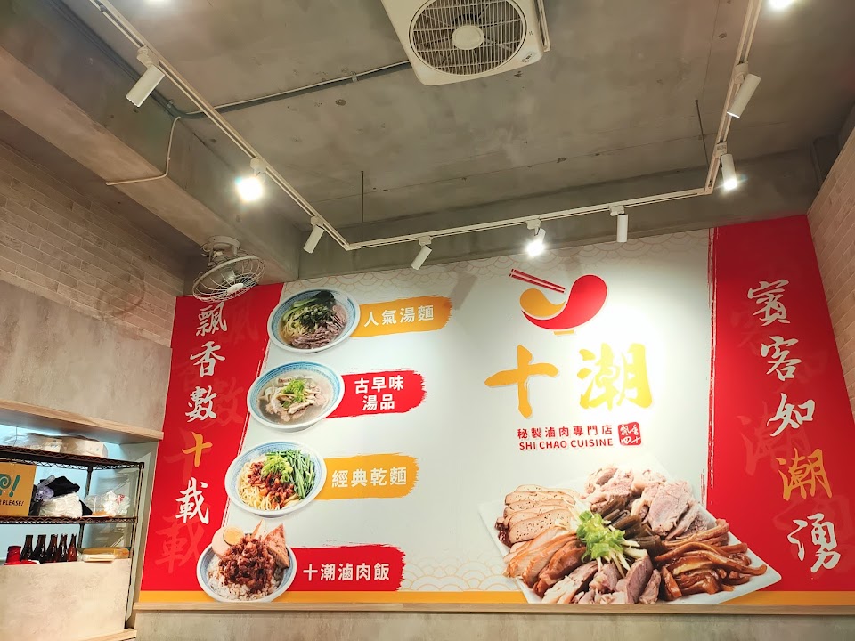 十潮店名應該是根據客家話早餐(食朝)的諧音而來,是非常道地客家口味的飲食店,有麵飯小菜等等,麵是屬於油麵有古早的味道,滷肉飯順口不死鹹又有搭配豆干或魯蛋,入口一股香嫰的口感,如果再配上一碗豬頭肉湯或粉腸湯,吃的一定滿意十足。店內經過裝璜過更加乾凈整覺。