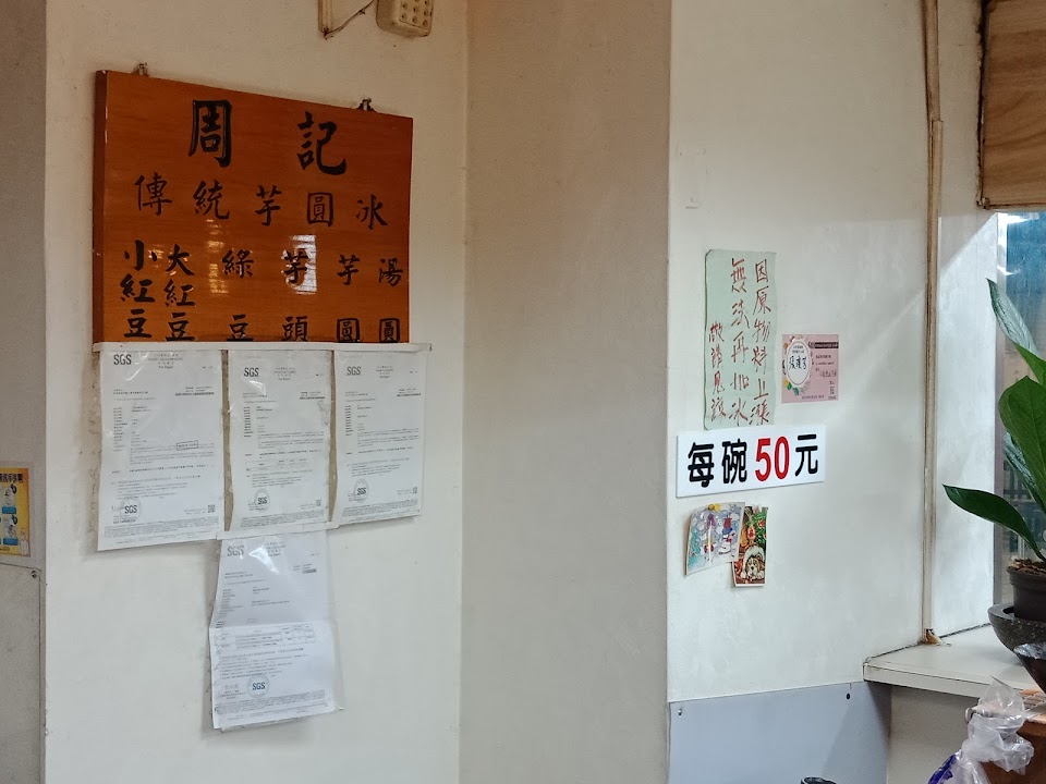 周記傳統芋圓冰,70年老店,古早味傳統挫冰,提供百草粉可以加在甜湯口味非常特別第一次看到,還有香蕉油加在剉冰上更吃起來更順口,芋圓是扁的那種,所有的料都是老闆手工製作,推推??? …
