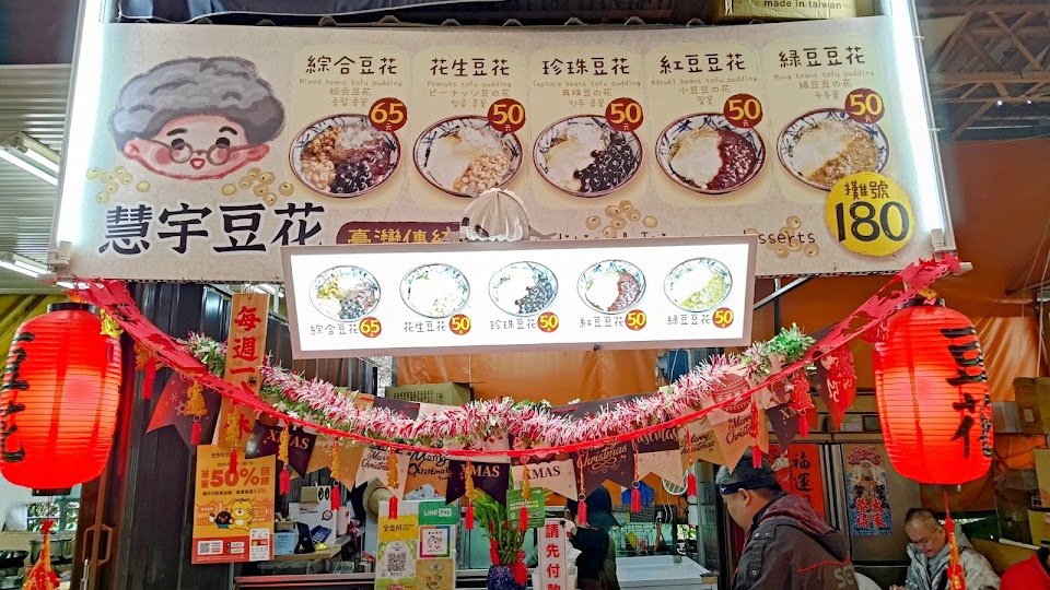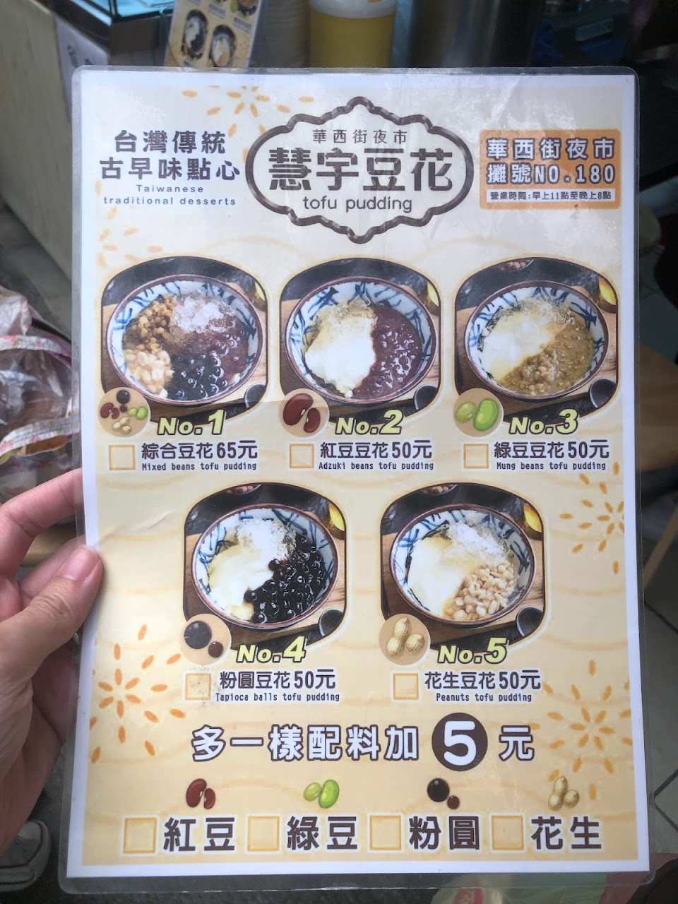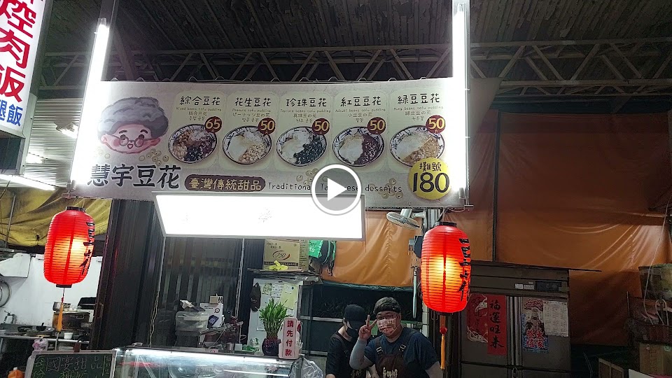 在華西街觀光夜市尾段,小王煮瓜對面的慧宇豆花,非常好吃?乾淨,用的碗是750cc的大碗、用料十足,本體豆花有古早味,配料一吃就知道是自家煮的不甜膩,真的推薦給大家台灣的傳統不敗甜品小吃?????? …