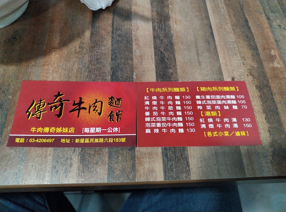 2024最新在地推薦餐廳的菜單_新屋區-傳奇牛肉麵館:“過嶺店” (開放內用)的菜單、圖片