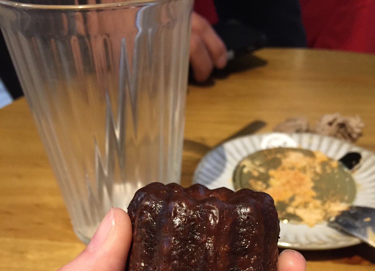可麗露皮脆內柔軟綿密,推薦原味、巧克力。 酒漬水果磅蛋糕也很好吃? …
