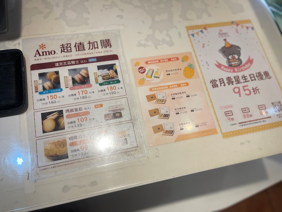 會員app優惠多、且可累積點數,每次去店員不同,都滿親切的,自己喜歡買拿的出去的伴手禮,都會搜集網路評價來挑選要買給親友的伴手禮,幾年下來,阿默價格調整情況、品質維持是最實在的,如果只能選一家我只能說…就阿默能買而已